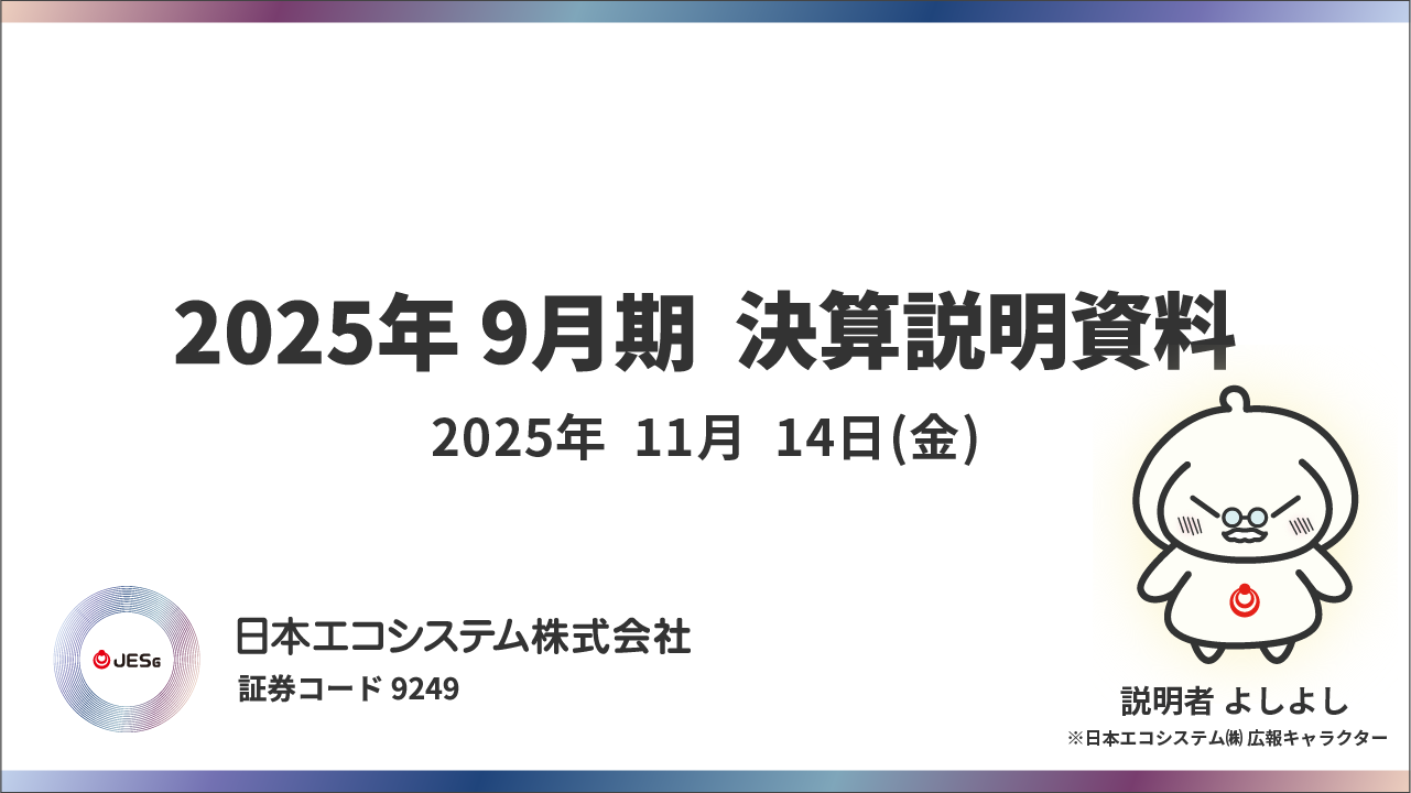 ▼日本エコシステム株式会社 2025年9月期決算説明資料 Instagramショート動画 https://www.instagram.com/reel/DSo2buJCPes/?utm_source=ig_web_copy_link&igsh=MzRlODBiNWFlZA==